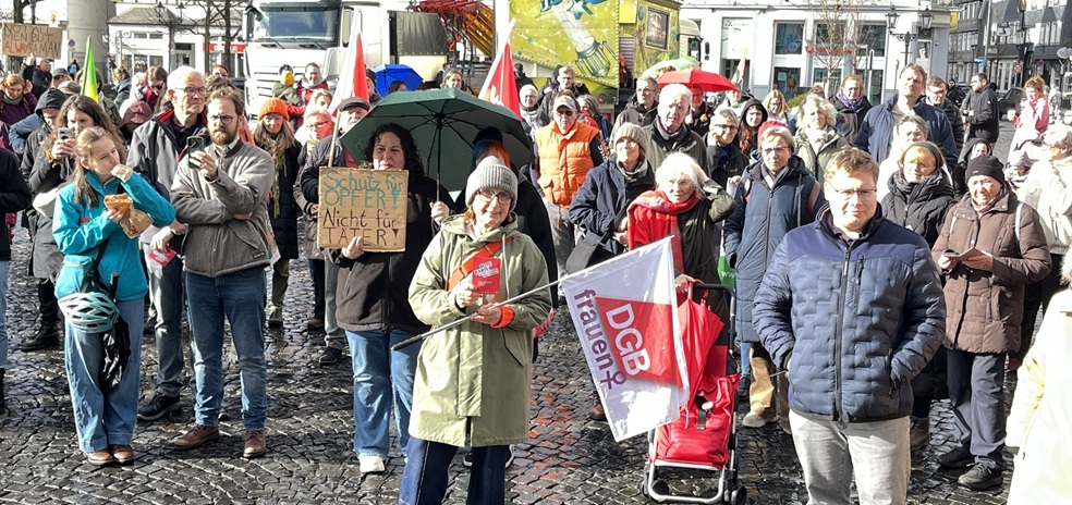 Deutschlandweit gehen tausende Menschen auf die Straßen und setzen Zeichen gegen digitale und analoge Gewalt an Frauen. Auf dem Lippstädter Rathausplatz kamen bei einer vom DGB und den DGB Frauen unterstützten Kundgebung 160 Menschen zusammen und machten mit den Roten Karten der DGB Frauen aufmerksam!