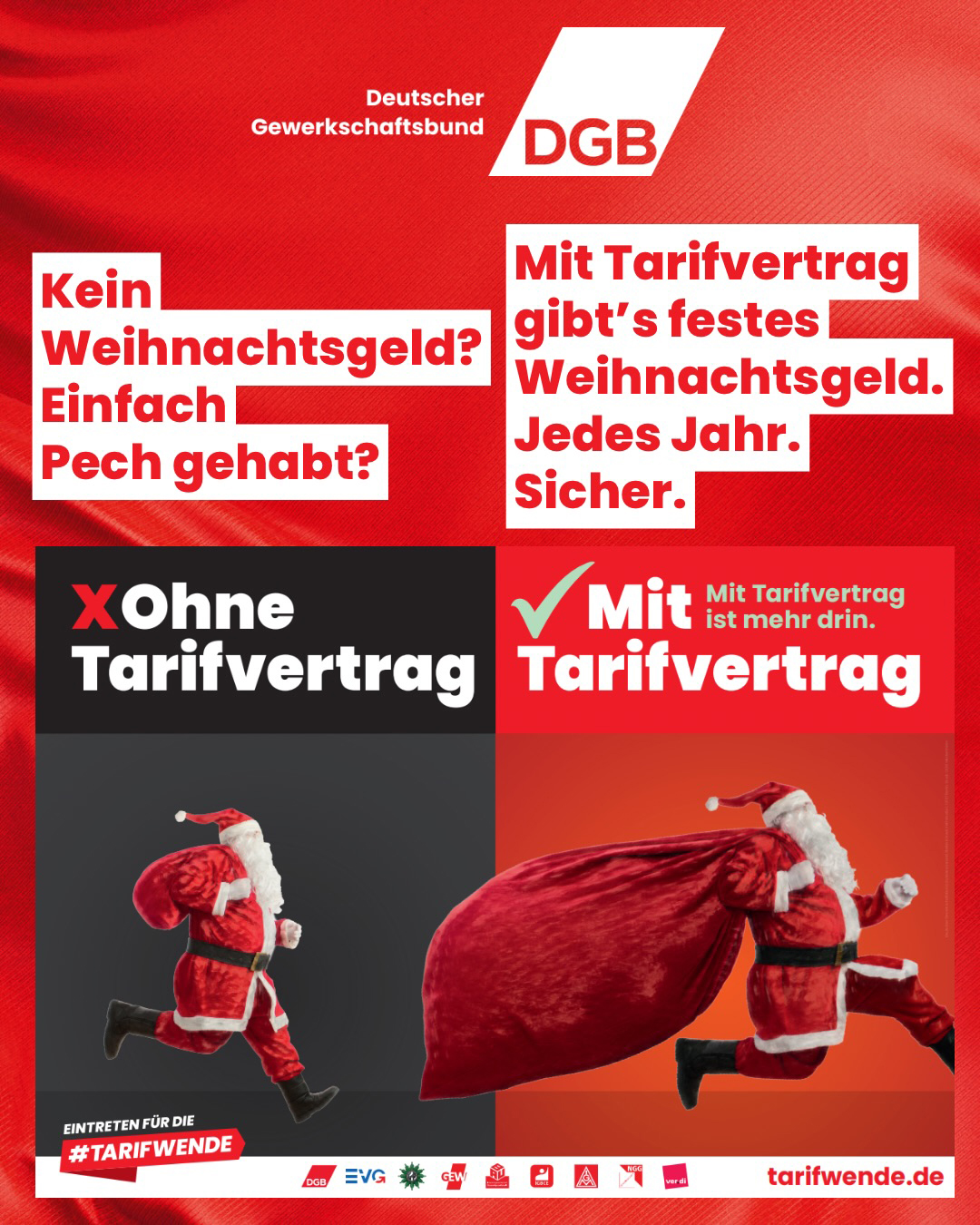 Einige Arbeitgeber tun dies freiwillig. Einen rechtlich verbindlichen Anspruch auf Weihnachtsgeld sichert nur eine entsprechende Vereinbarung in einem Tarifvertrag. Deshalb macht es einen großen Unterschied, ob der Arbeitgeber nach Tarifvertrag zahlt oder nicht: Mehr als drei Viertel der Beschäftigten (77 Prozent) in Betrieben mit Tarifvertrag erhalten Weihnachtsgeld, ohne Tarifvertrag viel weniger!